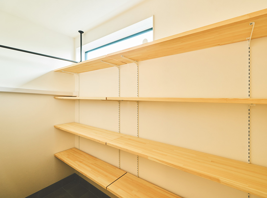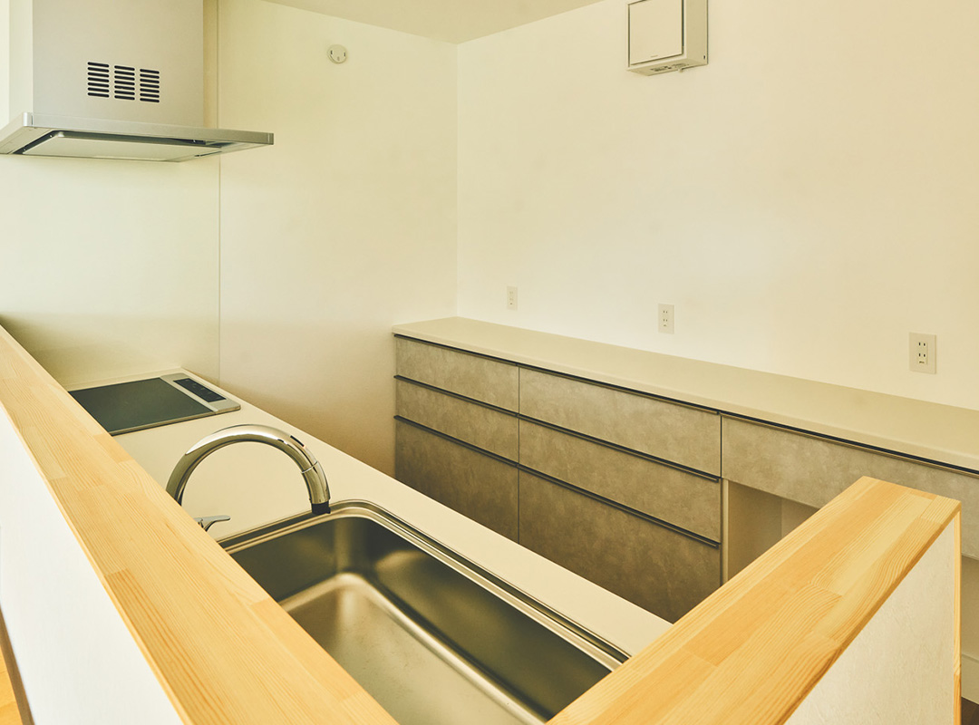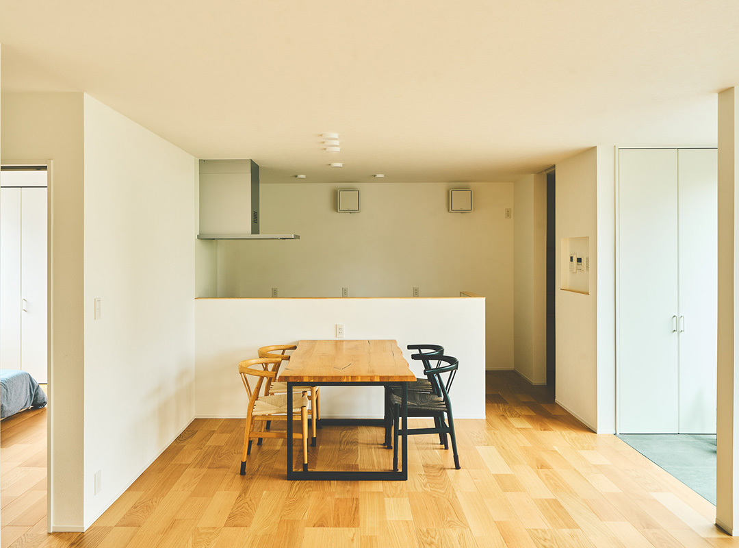 収納も充実させ、シンプルで心地よい空間に仕上げています。