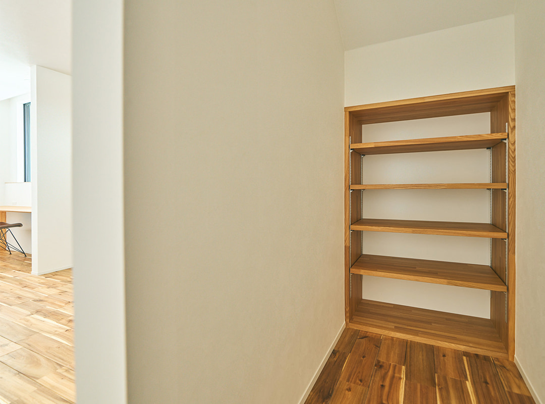 一方で、賑やかな時間のすぐ傍らには、静寂を楽しむための仕掛けを施しました。階段下のデッドスペースを有効活用したヌックは、まるで秘密基地のような隠れ家空間。お気に入りの本を抱えてこもったり、こだわりのコーヒーを片手に一息ついたり。LDKの気配を程よく感じながらも、誰にも邪魔されない「個」の時間を満喫できます。