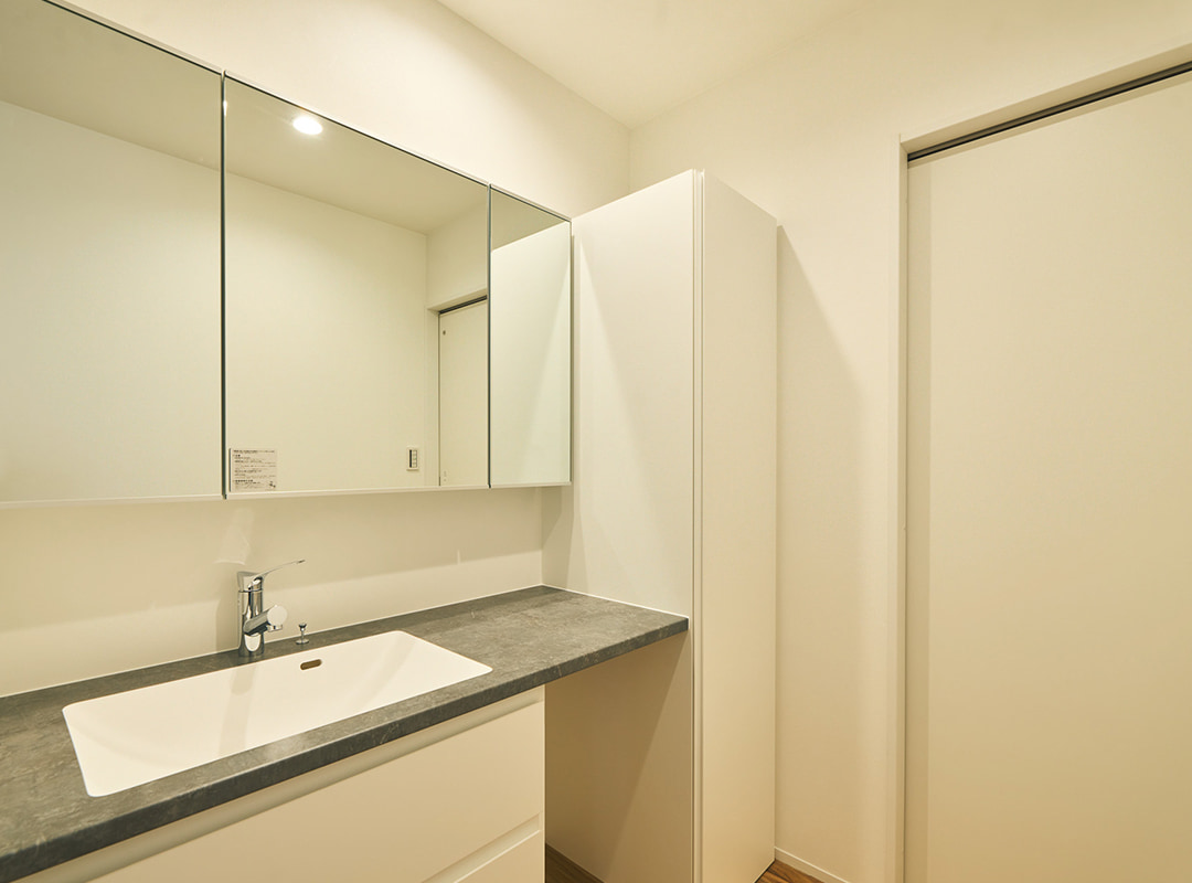 都会的なグレーモダンの外観に包まれたこの家は、最新の機能性と未来の自由度を高い次元で両立させています。